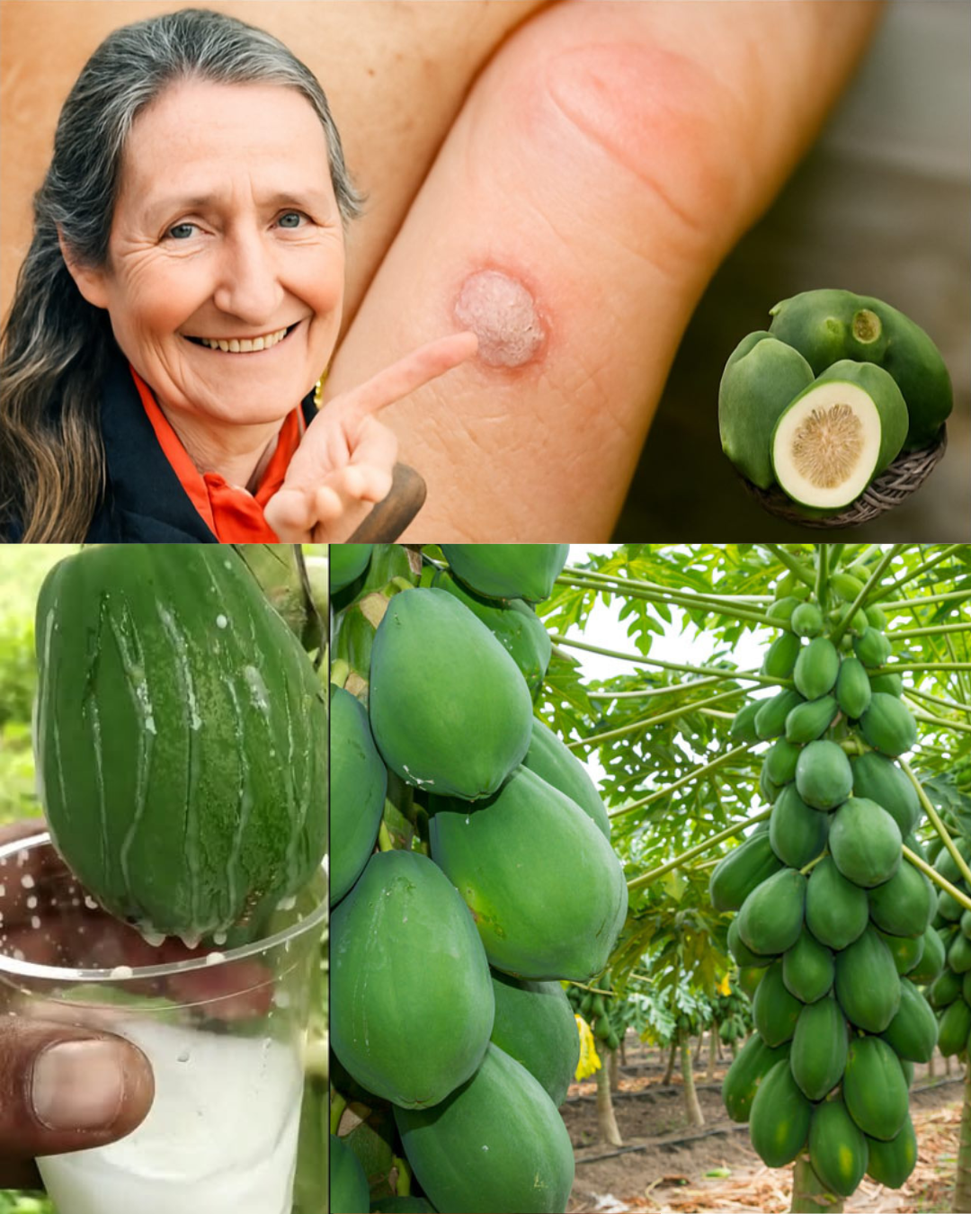 La papaya es una fruta tropical amada en todo el mundo, pero hay un tesoro menos conocido y más potente que la fruta madura: su savia o látex (el líquido blanco que brota de la papaya verde). Como se ve en la imagen, esta savia ha sido utilizada tradicionalmente para el cuidado de la piel y la sanación.