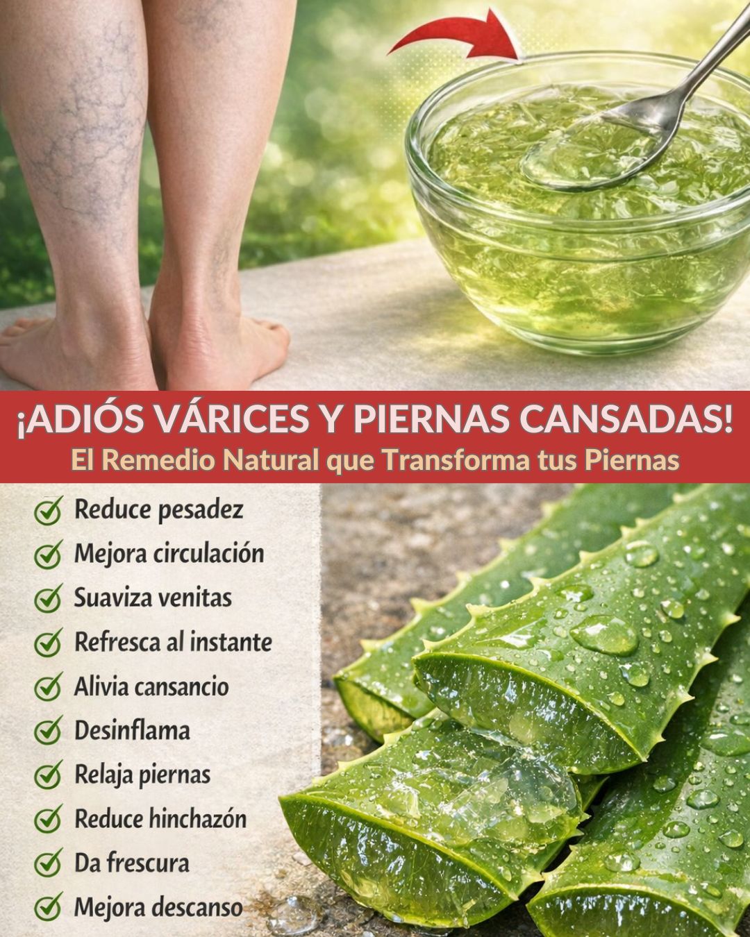 Receta Principal Potenciada: Gel Refrescante de Aloe Vera para Varices y Piernas Cansadas