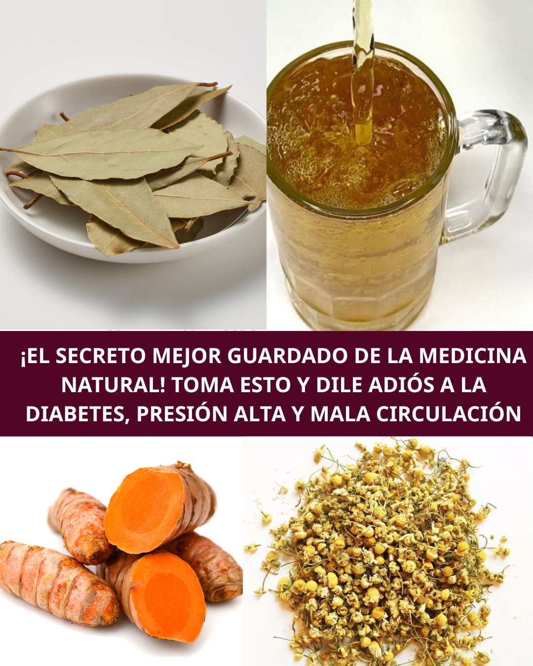 La combinación de manzanilla, laurel, cúrcuma y hierbas medicinales es un poderoso remedio natural que puede ayudar a regular la glucosa, mejorar la circulación, reducir la inflamación y equilibrar la presión arterial.