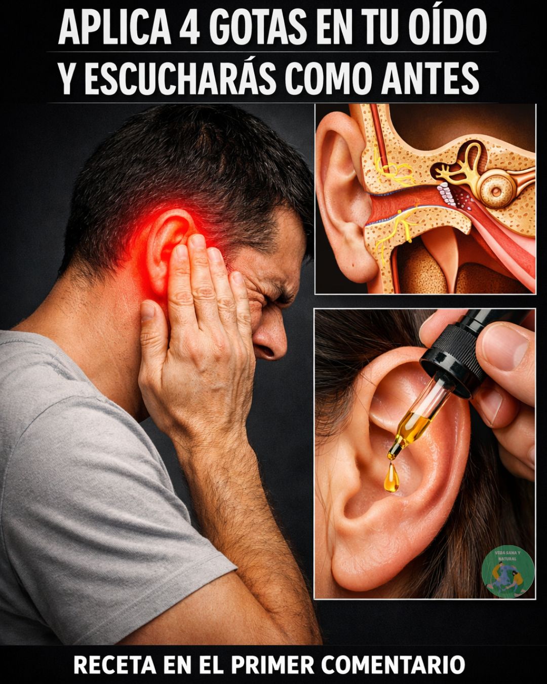 “Llevaba 6 años sin escuchar bien del oído izquierdo. Mi hija me compró un aparato de 28 mil pesos que nunca usé porque me molestaba. Hace un mes mi nuera me preparó estas gotitas. Al cuarto día salió un tapón de cera del tamaño de un frijol… ¡y de repente escuché la misa completa sin repetir nada! Ahora hasta oigo cuando mi mujer murmura en la cocina.”