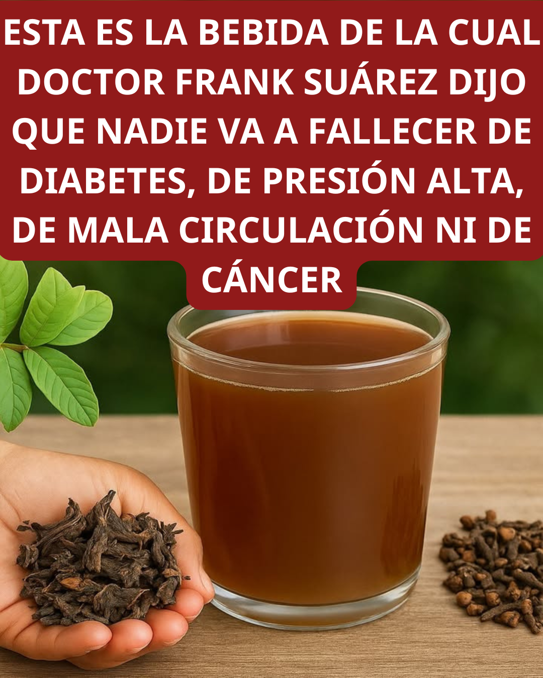 Aunque el Dr. Frank Suárez promovió varios suplementos y remedios, la bebida que coincide con esta descripción y que utiliza el Clavo de Olor (presente en la imagen) se relaciona fuertemente con infusiones ricas en antioxidantes y especias.